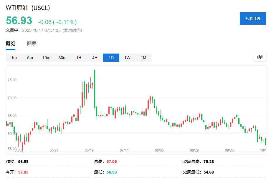 周四,美国WTI原油期货收于每桶56.99美元,下跌2.2%,创下2021年2月以来最低价格,过去一年已下跌19%。本周跌幅已超过今年春季特朗普宣布一系列关税政策引发经济动荡担忧时的低点。