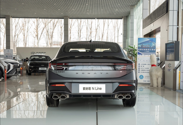 2.0T N Line Pro版本的轮毂采用黑色刀锋式设计,轮胎的尺寸为235/45 R18,该版本车尾还提供黑色运动扰流板,该车型的前后LOGO均采用黑色涂装,贯穿式H立面尾灯也符合自身的调性,排气采用四出式设计,运动范也是比较足,车身尺寸方面,该车型的长宽高分别为4945x1860x1445毫米,轴距为2875毫米。
